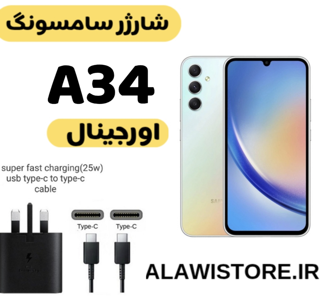 شارژر سامسونگ مدل A34 با توان ۲۵ وات و USB Type C (اختصاصی)