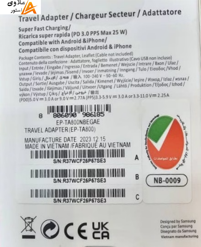 اما شارژر اصلی سامسونگ 25 وات تایپ C مطابق استانداردهای جهانی تولید شده و شارژی کاملاً امن و مطمئن ارائه میدهد.